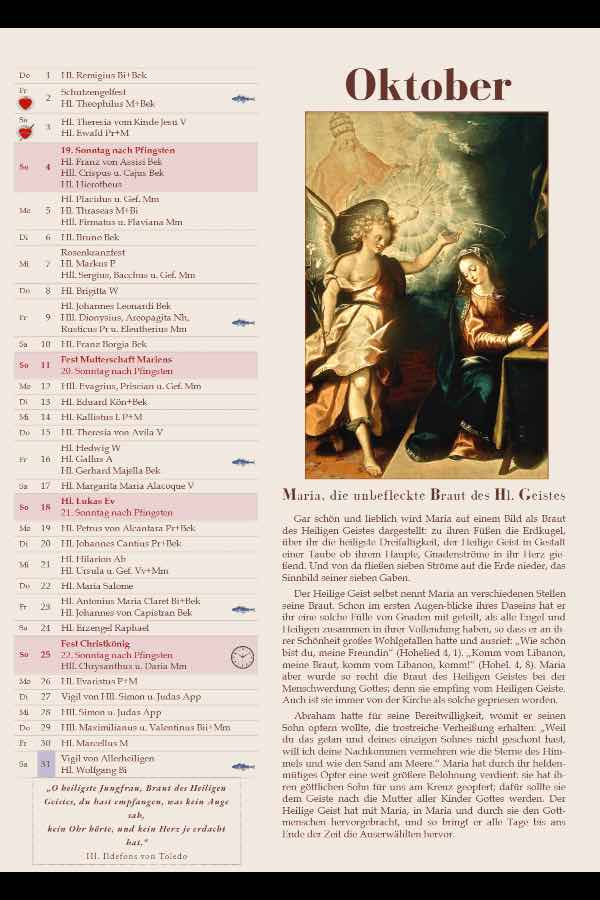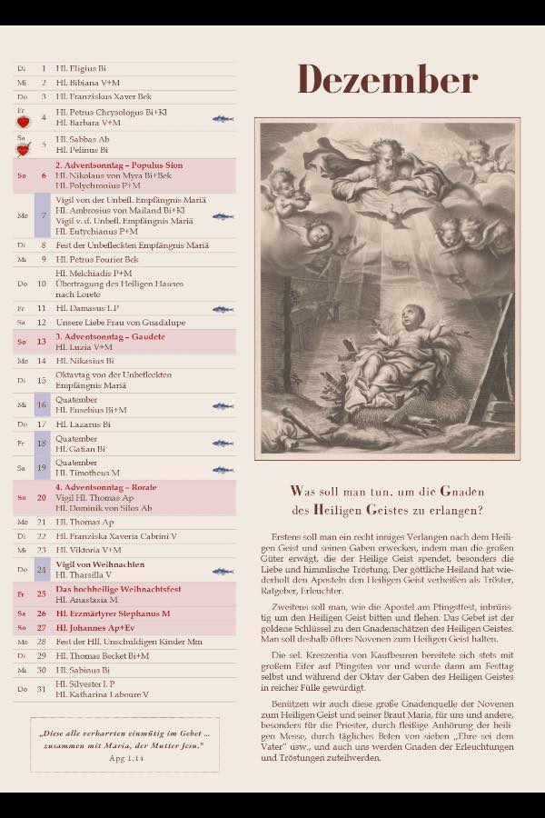 Ihr verlässlicher und unersetzlicher Begleiter durch das Jahr. Der “Haussegen”-Kalender enthält heuer wieder viele ansprechende Bilder und Textimpulse, die den christlichen Glauben im Alltag inspirieren und stärken wollen. Die Schrift ist angenehm lesbar gestaltet, damit Sie alle Festtage, Vorbereitungszeiten wie Novenen und andere liturgische Höhepunkte im Kirchenjahr gut im Blick haben.